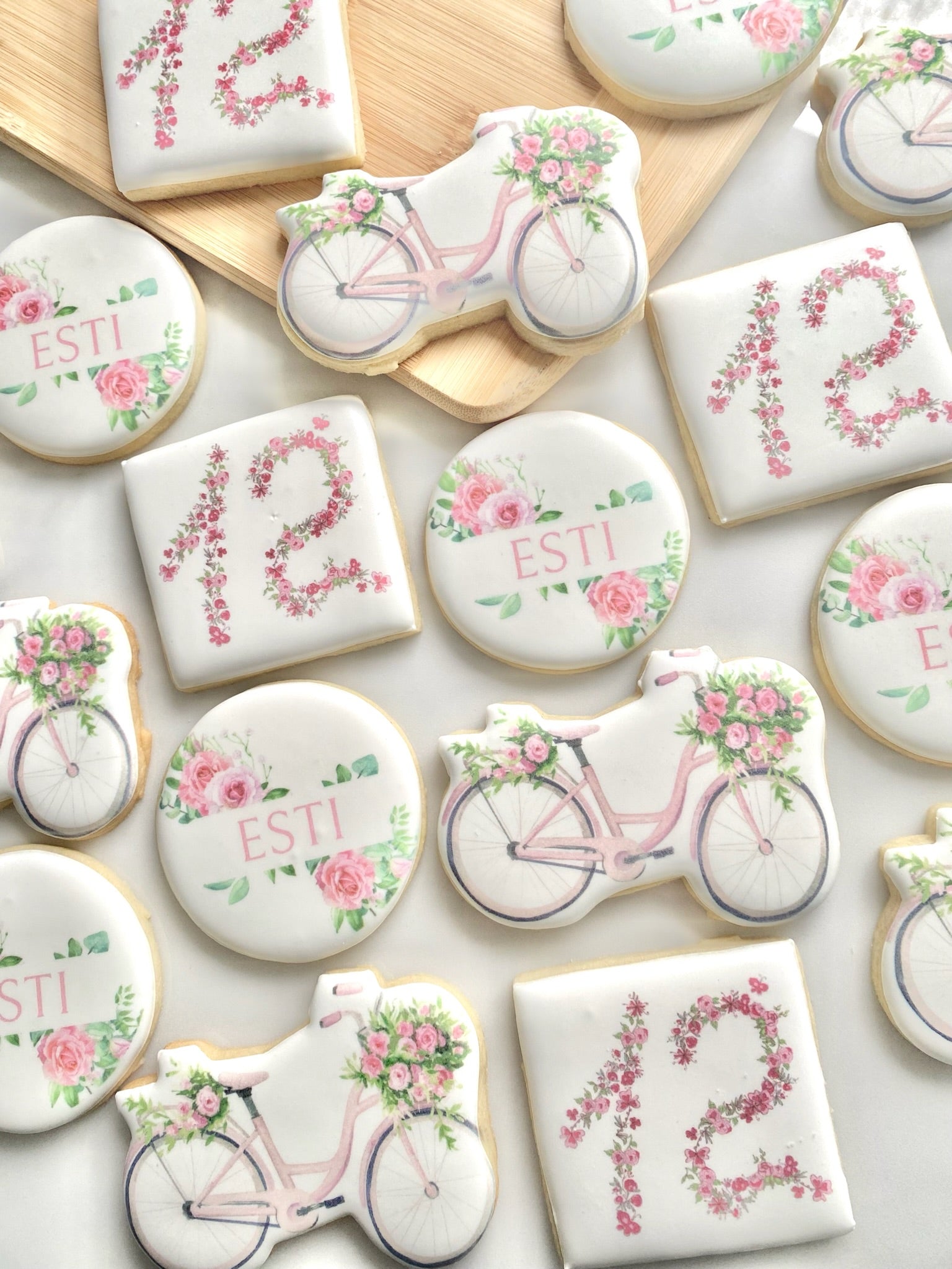 One dozen bicycle themed birthday cookies