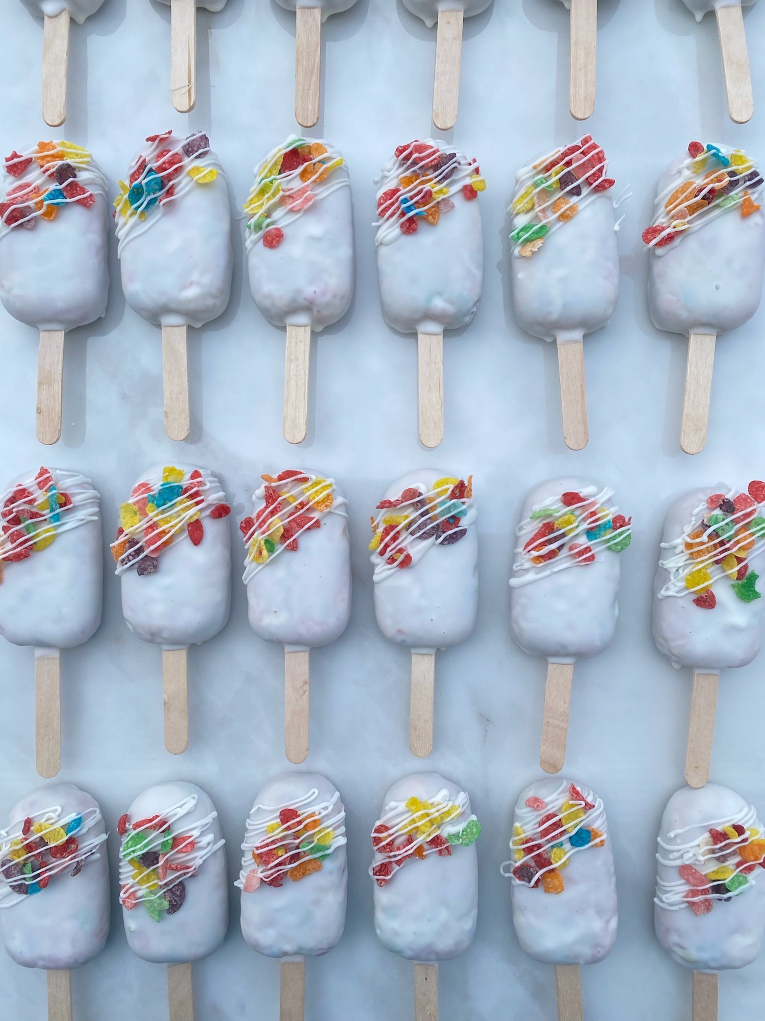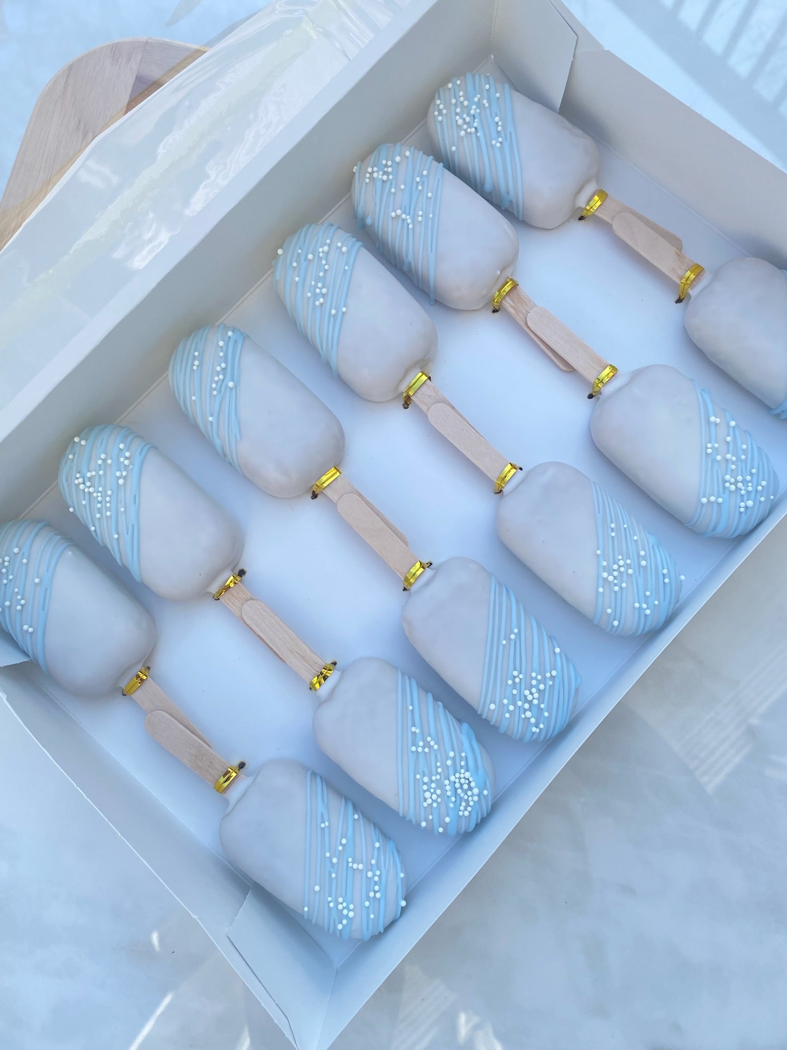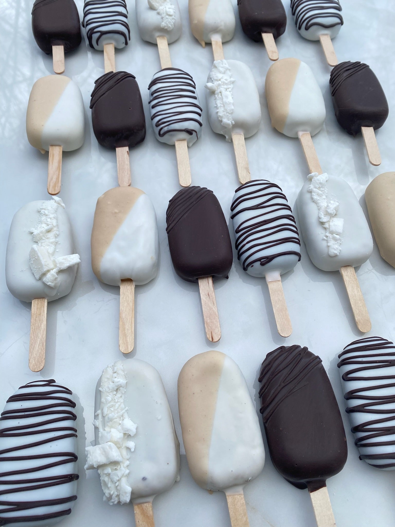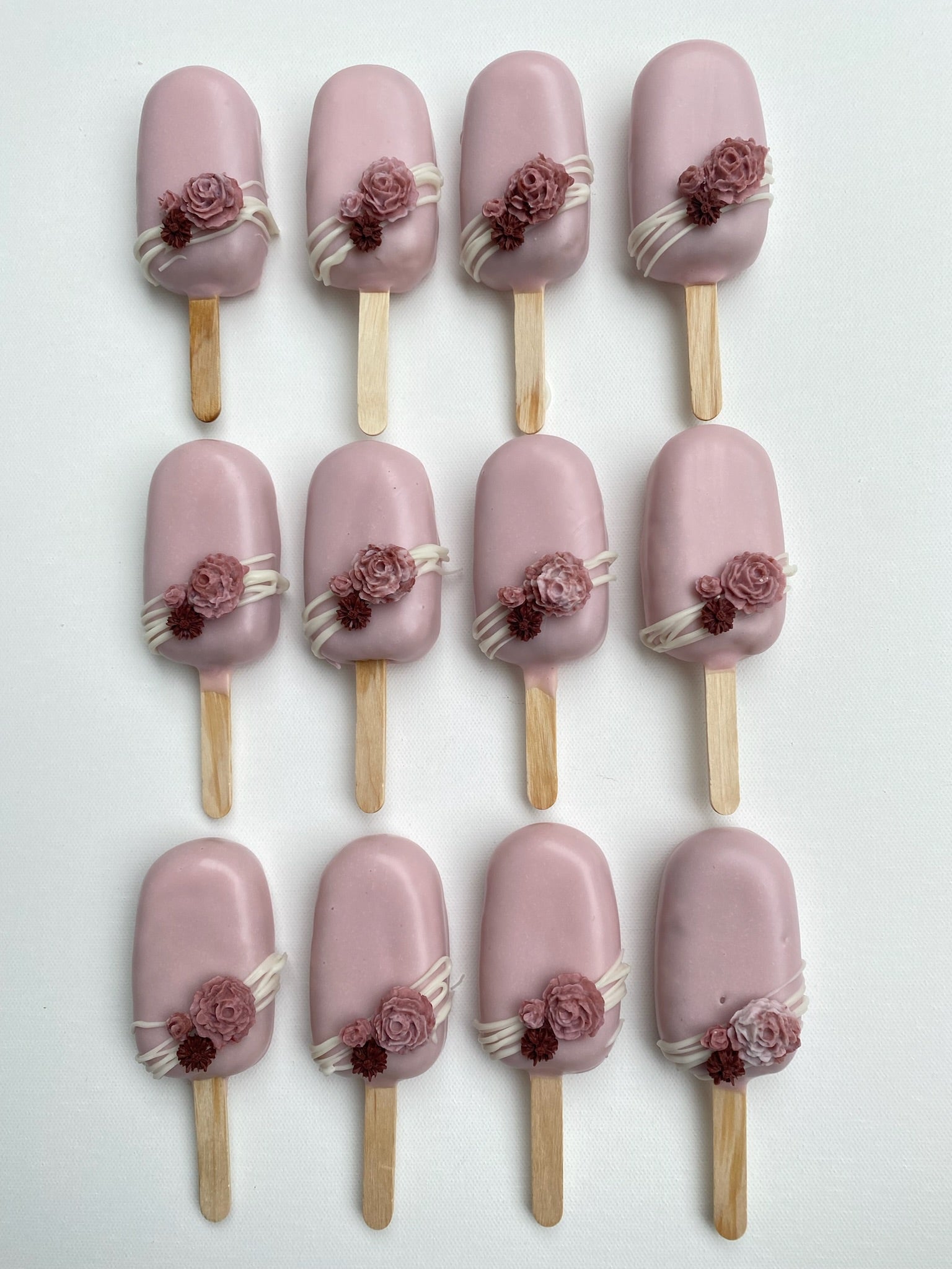 This item includes 1 dozen cakesicles, you can display them as a beautiful center piece on your table or amazing addition to your sweets table!