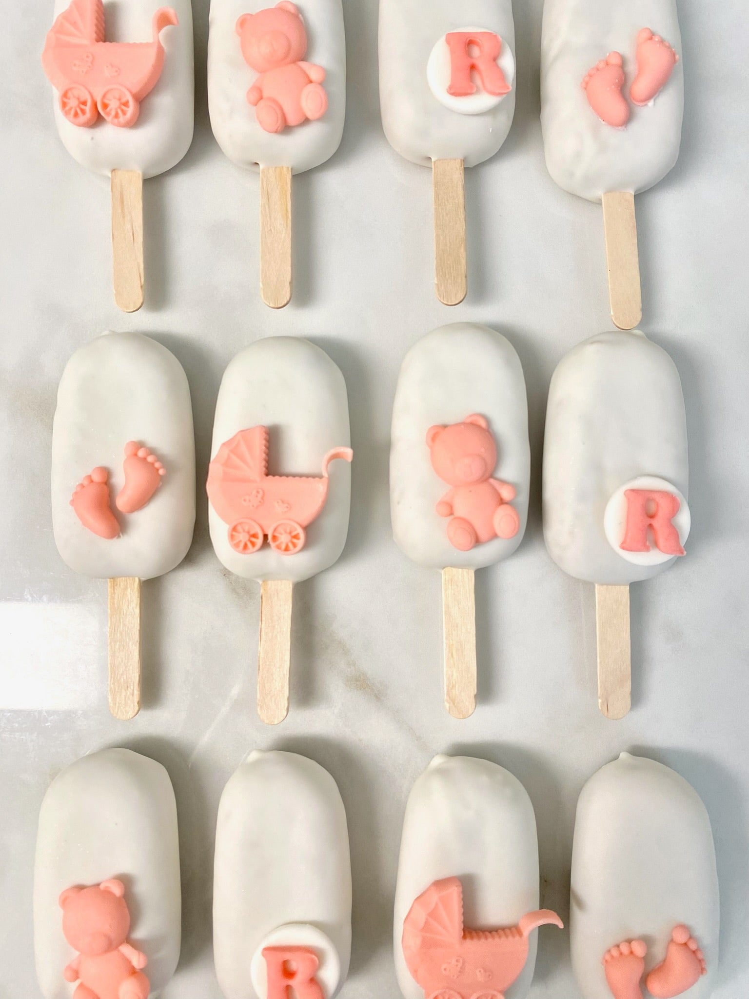 This item includes 1 dozen cakesicles with a customizable topper to match your color scheme and event!