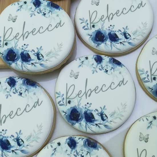 1 dozen printed cookies with name and floral details