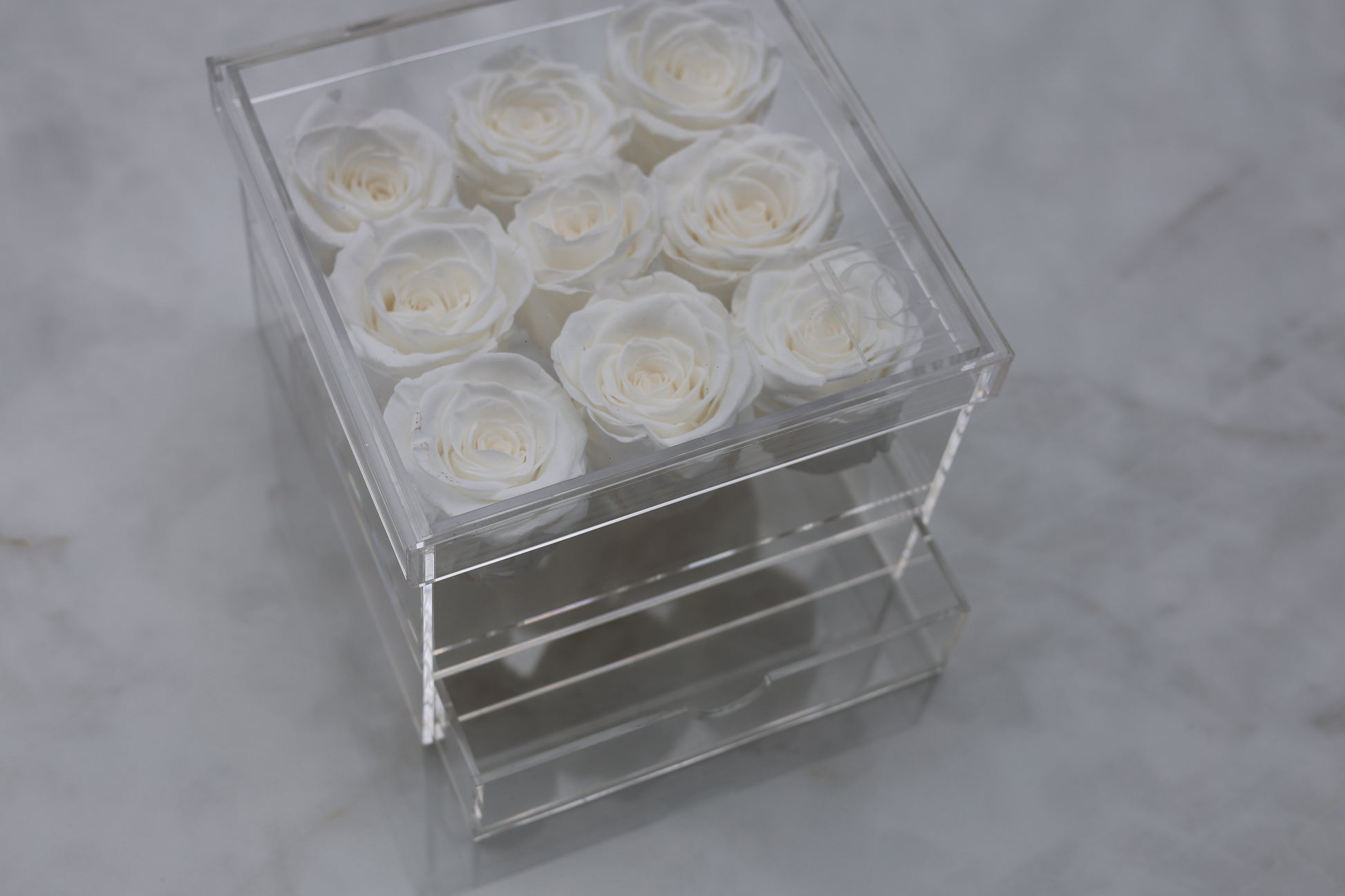 Our Luxury acrylic Jewelry Box filled with 9 forever roses is the perfect way!
